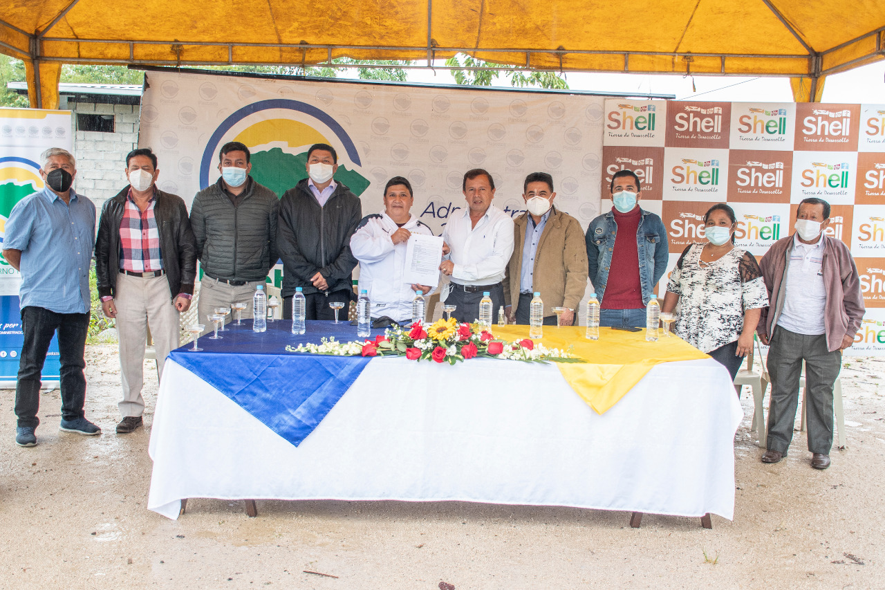 Jaime Guevara, Prefecto de Pastaza, en compañía de los Consejeros Provinciales; Guidmon Tamayo, Luis Chalán y Freddy Zabala, realizaron la entrega de los recursos por un monto de USD 75.009.50 dólares, al Tlgo. Patricio Peralta, Presidente del GAD Parroquial de Shell que permitirán consolidar esta importante obra.