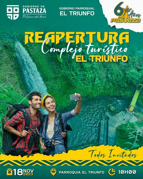 Ahora el turno de festejar a Pastaza es para la parroquia El Triunfo,con la inauguración de un Complejo Turístico, que satisfacerá las necesidades de los habitantes de ese lugar amazónico.
