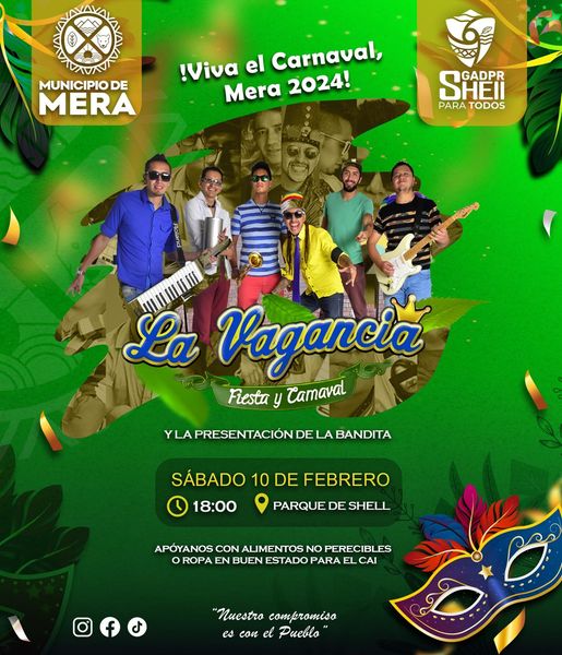 Sé parte de los carnavales Mera 2024, disfruta de un increíble show artístico este 10 de febrero en el Parque de Shell