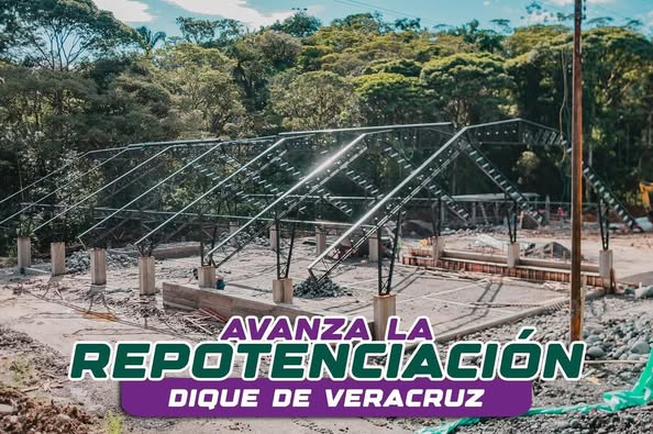 Avanza la construcción de la estructura para el espacio cubierto en el dique de Veracruz, destinada a fomentar la práctica deportiva y el encuentro comunitario.