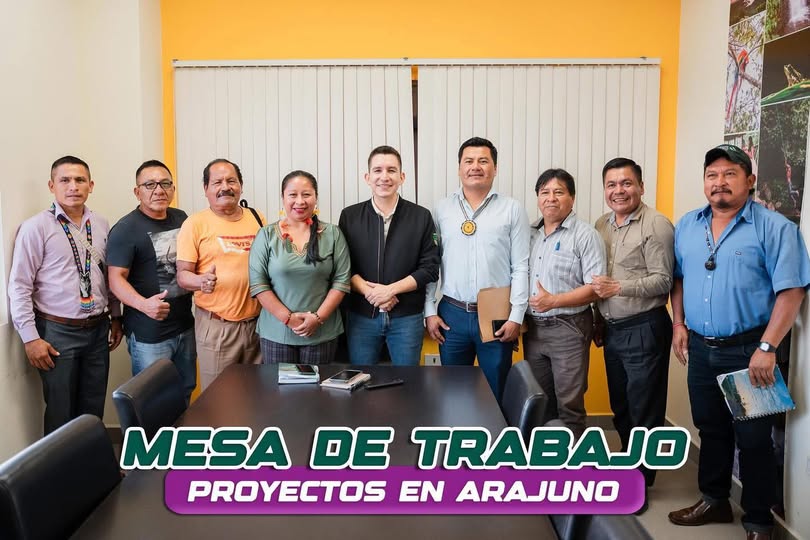 El Prefecto de Pastaza, André Granda, junto a la Viceprefecta, Lineth Calapucha, el Alcalde de Arajuno, Darwin Tanguila, dirigentes, técnicos y funcionarios, participaron en una mesa de trabajo dedicada a la planificación y seguimiento de proyectos estratégicos para el cantón, con especial atención a la vialidad, en beneficio de varias comunidades y del casco central de Arajuno.