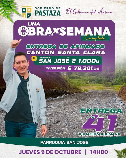 Sin detenerse !!! Ya contamos con la … #UnaObraXSemana llega a San José Navegación de entradas Canelos, atendida desde varios frentes de trabajo El turismo se fortalece paso a paso.
